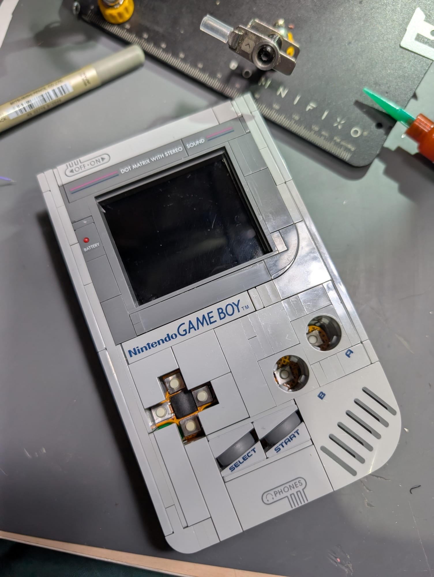 If you have played with the Lego kit, you know the buttons aren't the greatest. I wanted to avoid strain on the Lego by limiting the travel of the buttons (cause they kinda suck). I am using high quality panasonic buttons that have a low gf (grams of force). They also have very nice clicky feedback, a bit like a mouse.